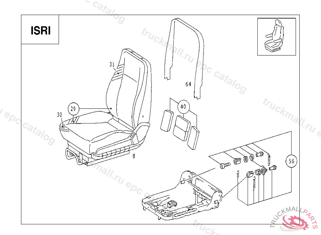DRIVER SEAT. FRONT SEAT RIGID ISRI6860/885, DETERMINE COVER FABRIC VIA VEDOC "NFC 5117"