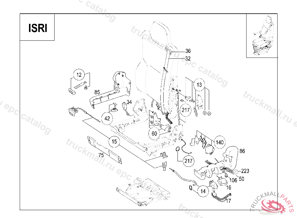 FRONT SEAT SWIVEL TYPE ISRI6860/875, DETERMINE COVER FABRIC VIA VEDOC "NFC 5117"