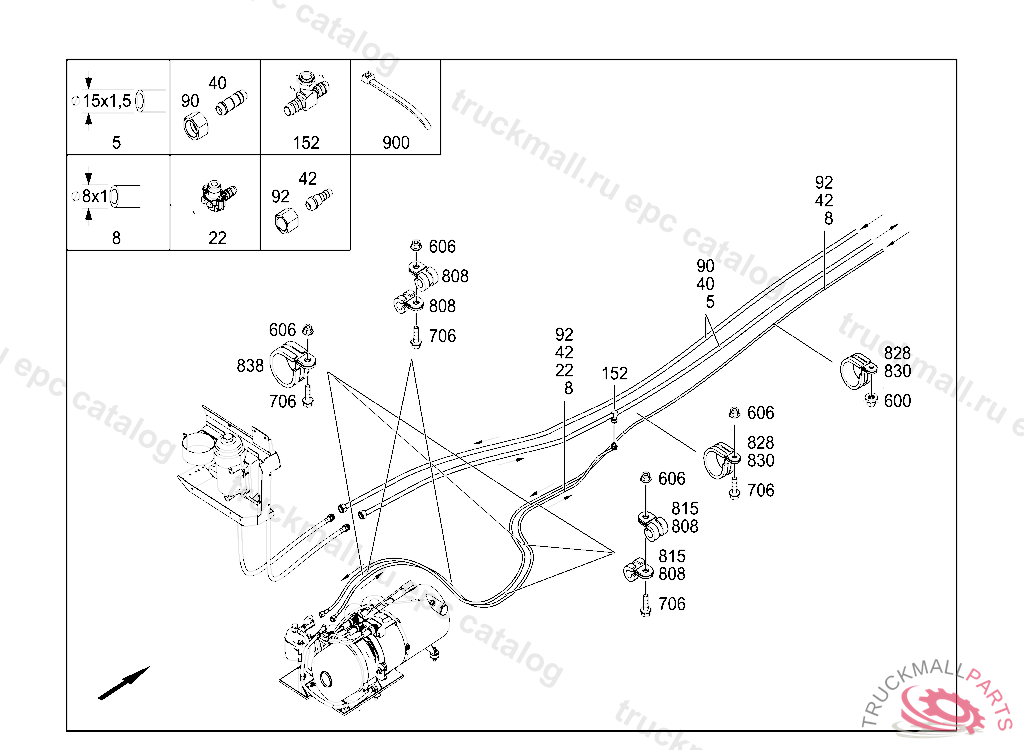 CLAMP SUCTION/DELIVERY/RETURN LINES 15/15 MM, Replaced By: A0019950642
