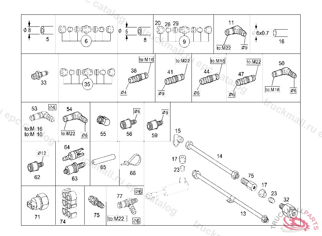 CONNECTION PIECE COMPRESSED-AIR-LINE PLUG-CONNECTION TO M16, 6MM, VOSS 232, Replaced By: A0049976989