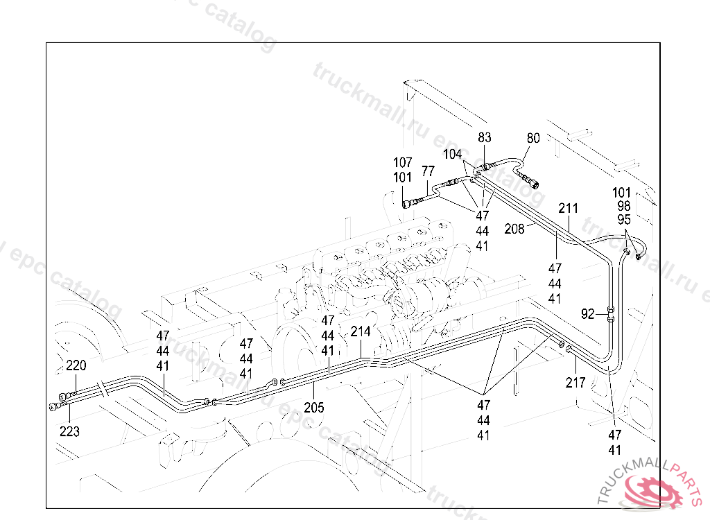 CLAMP DELIVERY AND SUCTION LINES TO ENGINE, FRONT