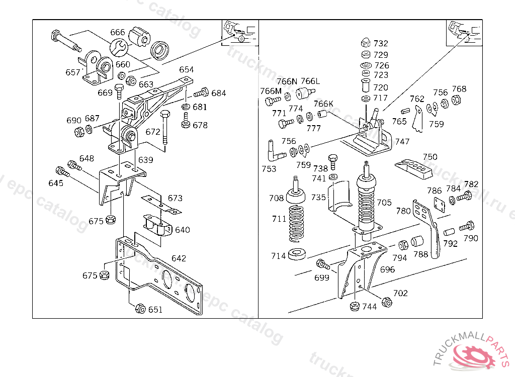 REPAIR KIT CAB SUSPENSION,FRONT, FOR USE WITH SHORT MERCEDES-BENZ CAB5 764324