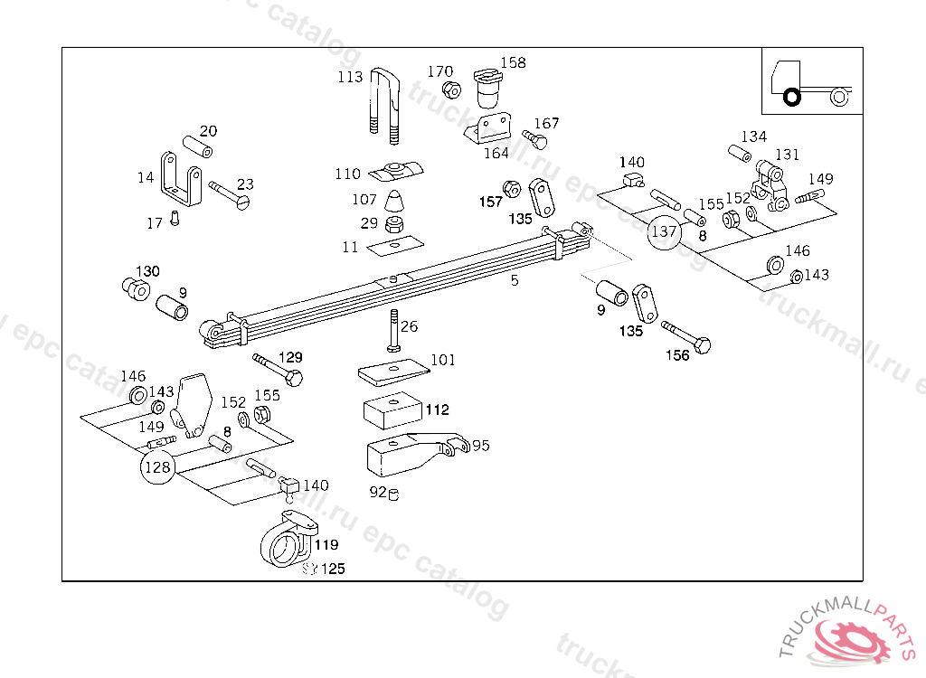 PIN FRONT SPRINGS TO FRONT AXLE 28 MM, Replaced By: A9303230374