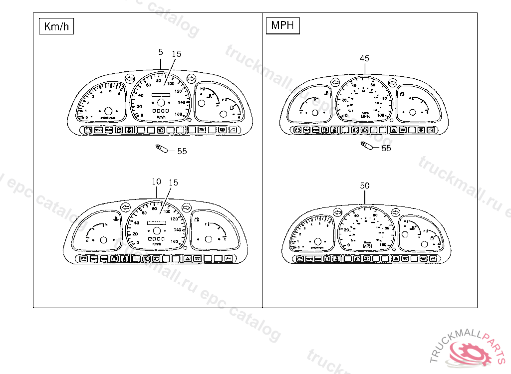 INSTRUMENT CLUSTER READING IN KILOMETERS,WITH TACHOMETER DSL,042279