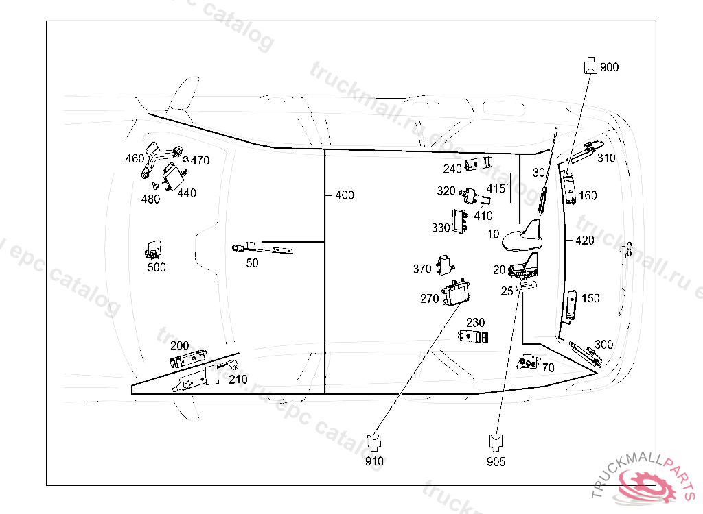 AMPLIFIER AT ROOF FRAME, REAR LEFT, A 40866520110207