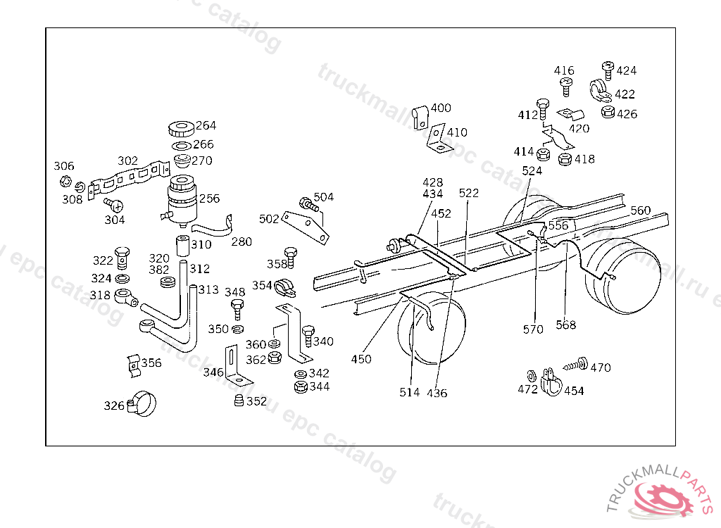 LINE FROM RESERVOIR HOSE TO BRAKE MASTER CYLINDER, ON TRUCKS,L.H.D.UP TO CHASSIS 145736 ALSO INSTALLED ON 145741,145768,145770,145774,145786,145787,145795 145697,145701,145807,145808,145819,145825,145830,145837,145840,145846,145860,145861,145888,145901, 145907,145910,145911,145913-145917,146138. EXCEPT FOR 139841,139842,140553,145397,145406,145409,145426,145445,145462,145660. ON TRUCKS,R.H.D.UP TO CHASSIS 148036 WITH EXCEPTION OF 140555,142078 ON BUSES,L.H.D.UP TO CHASSIS 018153 ALSO INSTALLED ON 018155,018156,018159,018308,018310,018315,018317,018318,018327,018350,01 8355 WITH EXCEPTION OF 017661,017829, ON BUSES,R.H.D.UP TO CHASSIS 018729