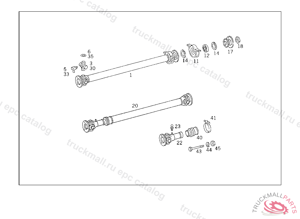 PROPELLER SHAFT FROM INTERMED.SHAFT BEARING TO REAR AXLE, 5.6 T FROM CHASSIS 013362 5.99 T FROM CHASSIS 014983 ALSO INSTALLED ON 013464-014767
