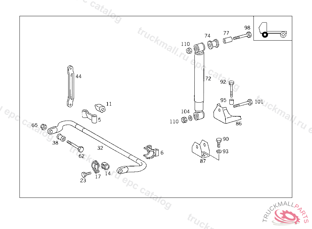 BEARING BRACKET SHOCK ABSORBER TO FRONT AXLE,RIGHT,5 729 322