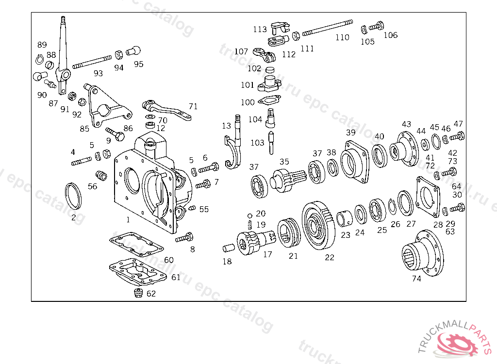 TRANSMISSION , FOR TRANSMISSION LESS P.T.O.SEE SPARE PARTS LIST.IF POSSIBLE,USE P.T.O.OF REMOVED TRANSMISSION. LOCK-OUT PARTS CAN BE TAKEN FROM REMOVED TRANSMISSION OR TO BE ORDER ED SEPARATELY-BREAKDOWN PARTS ARE COMPRISED IN THIS SPECI AL VERSION LIST, Replaced By: A3432602701, +001A3362603005