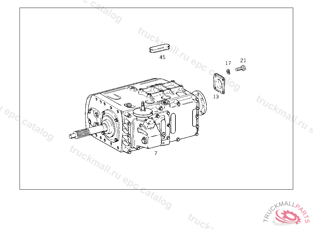 TRANSMISSION AK 6-80 OVERDRIVE 1ST SPEED RATIO1:6,7,6TH SPEED RATIO1:0,728, HORIZONTAL,WITH BACK-UP LIGHT SWITCH,COUPLING FLANGE AND SPEEDOMETER DRIVE,LESS GEARSHIFT LEVER,PEDAL ASSAMBLY,AND CLUTCH HOUS ING