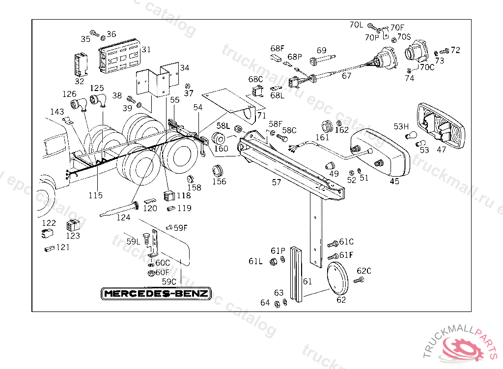 BRACKET TAIL LAMP BRACKET TO FRAME, ON VEHICLES HAVING NO MERCEDES-BENZ PLATFORM