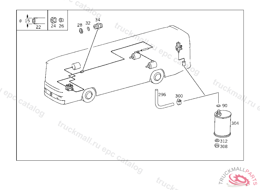 LINE FROM AIR RESERVOIR TO TWO-CIRCUIT BRAKE VALVE, ONLY APPLICABLE FOR TURKEY