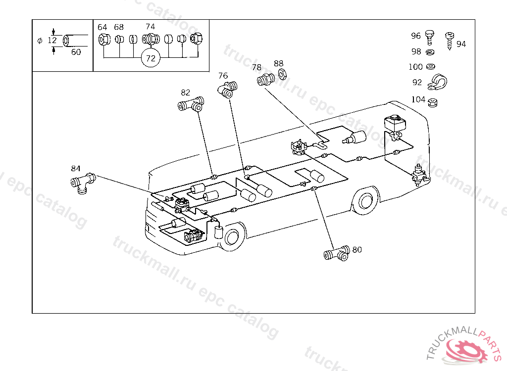 LINE FROM AIR RESERVOIR TO TWO-CIRCUIT BRAKE VALVE,CONNECTION: "1", ONLY APPLICABLE FOR TURKEY