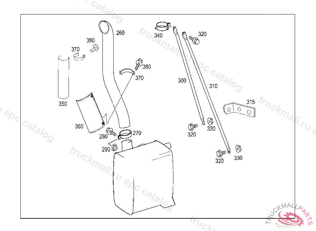REAR EXHAUST PIPE (TAIL PIPE), USED WITH SHORT DAIMLER-BENZ CAB