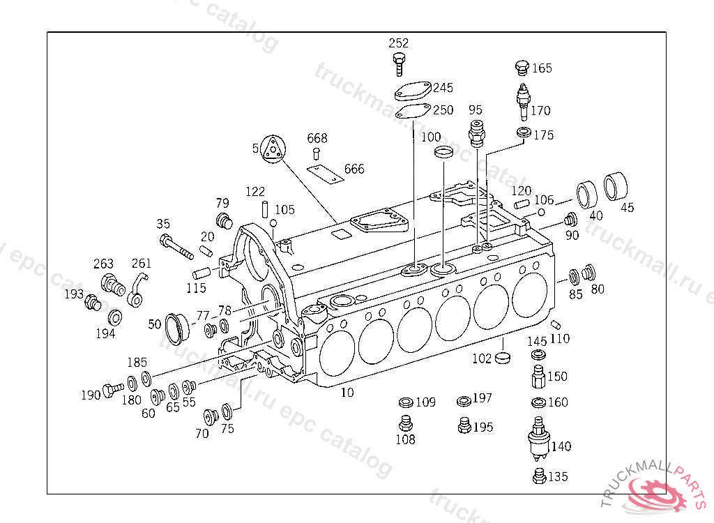 CRANKCASE , 28-MM-WIDE OIL PUMP GEAR OM 407,VERTICAL VERSION ORDER ADDITIONALLY: OIL PUMP 403 180 17 01 ORDER ADDITIONALLY: OIL NOZZLE PISTON COOLING HOLLOW SCREW PISTON COOLING SCREW PLUG,SEAL RING,TO LOCK LONGITUDINAL COOLING WATER DUCT TAPHOLE, Replaced By: A4070101908