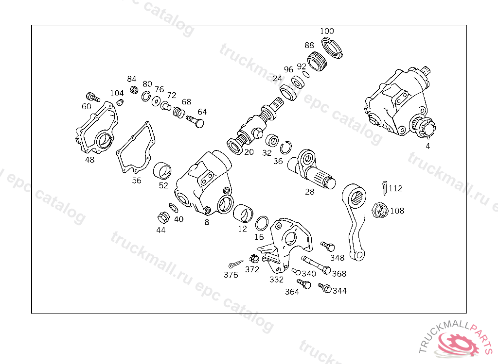 STEERING NUT WITH STEERING WORM, FOR L.H.D. UP TO CHASSIS 422483 FROM CHASSIS SEE SPARE PARTS LIST 814
