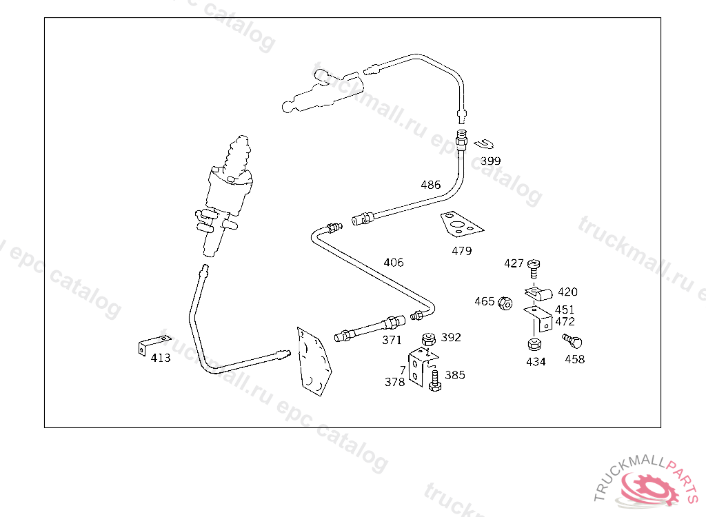 HOSE FROM BRACKET AT SIDE MEMBER TO CLUTCH SLAVE CYLINDER 350 MM, 024,026,027,028,121,122 5 095725 065,131,132 5 104253