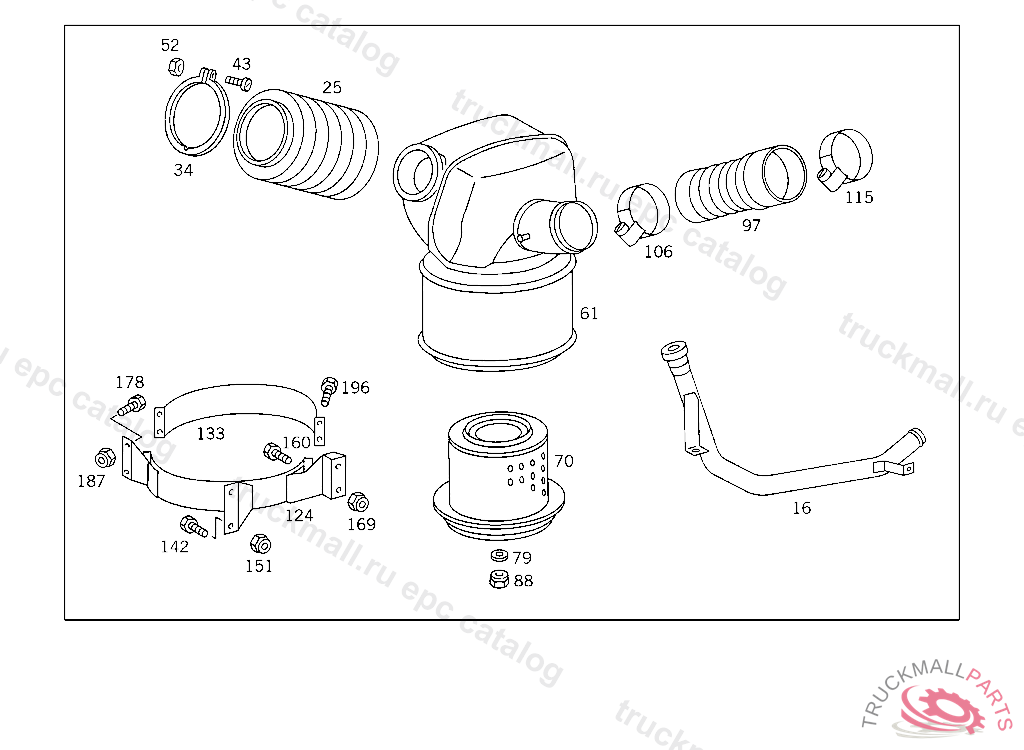 HOSE CLAMP FROM AIR CLEANER TO TRANSVERSE INTAKE PIPE, Replaced By: A0019951910