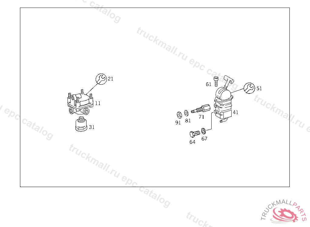 REPAIR KITTO 001 430 58 81/59 81,WABCO, WITH HAND BRAKE VALVE ON ENGINE TUNNEL, FROM IDENT NO. SEE MF 26032