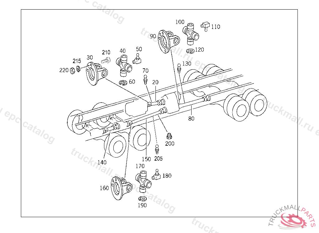 PROPELLER SHAFT FROM TRANSMISSION TO TRANSFER CASE 2205 MM