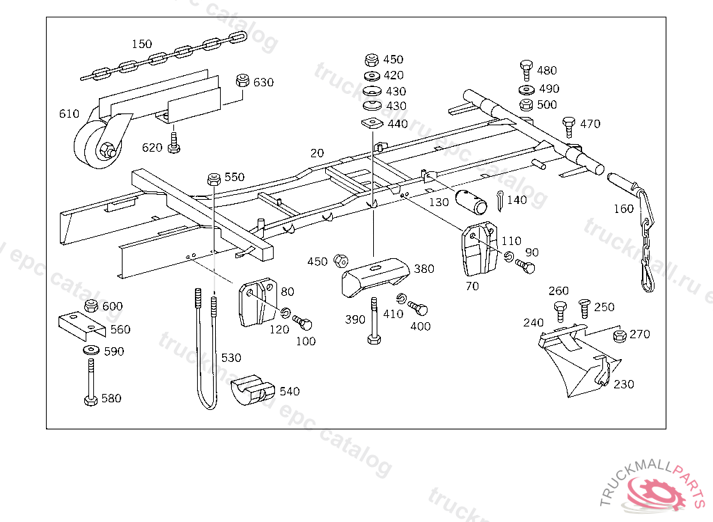 SUBSTRUCTURE AUXILIARY FRAME, DUMPING PLATFORM AND COMPONENT PARTS,INCLUSIVE OF SPARE WHEEL MOUNTINGS,SHOULD BE ORDERED FROM THE RESPECTIVE PLATFORM MANUFAC TURERS,MESSRS.F.X.MEILLER,MUNICH5 704731