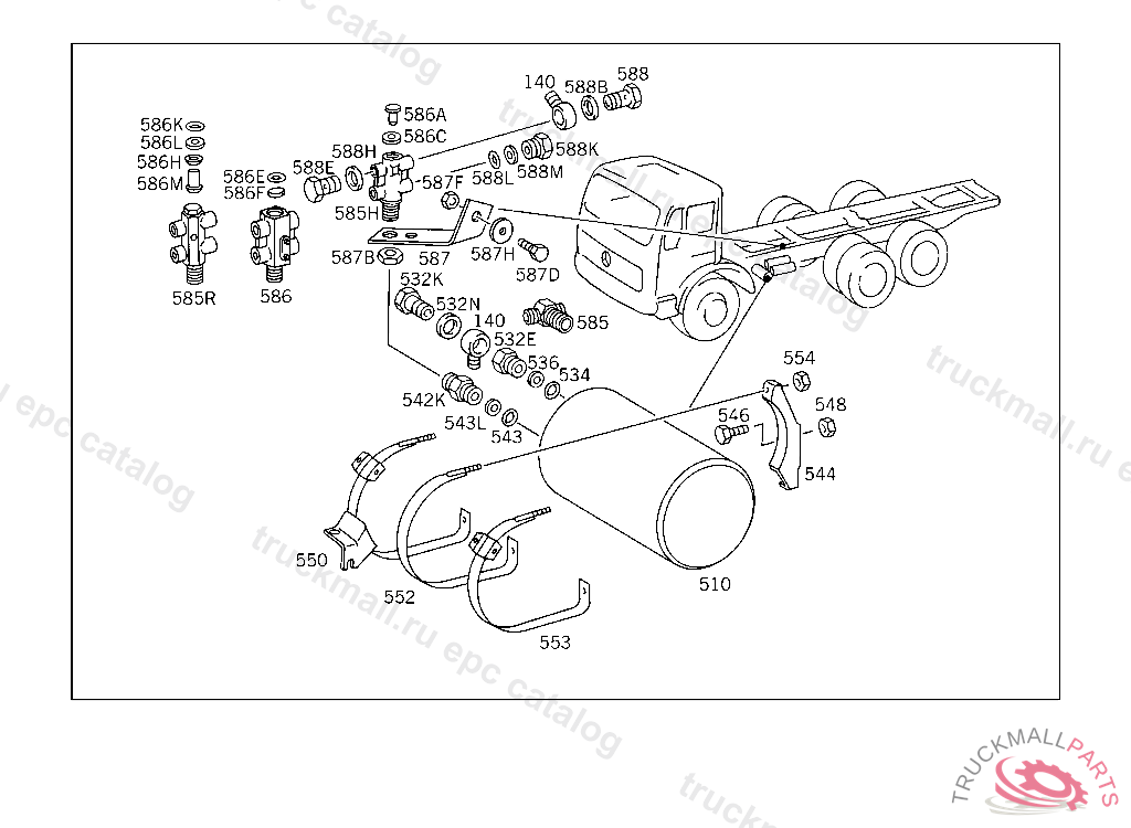 CROSS FITTING AIR RESERVOIRS I AND II,4 821954 620.415 UP TO CHASSIS 5 014668 620.416 UP TO CHASSIS 5 000515 620.417 UP TO CHASSIS 4 972023