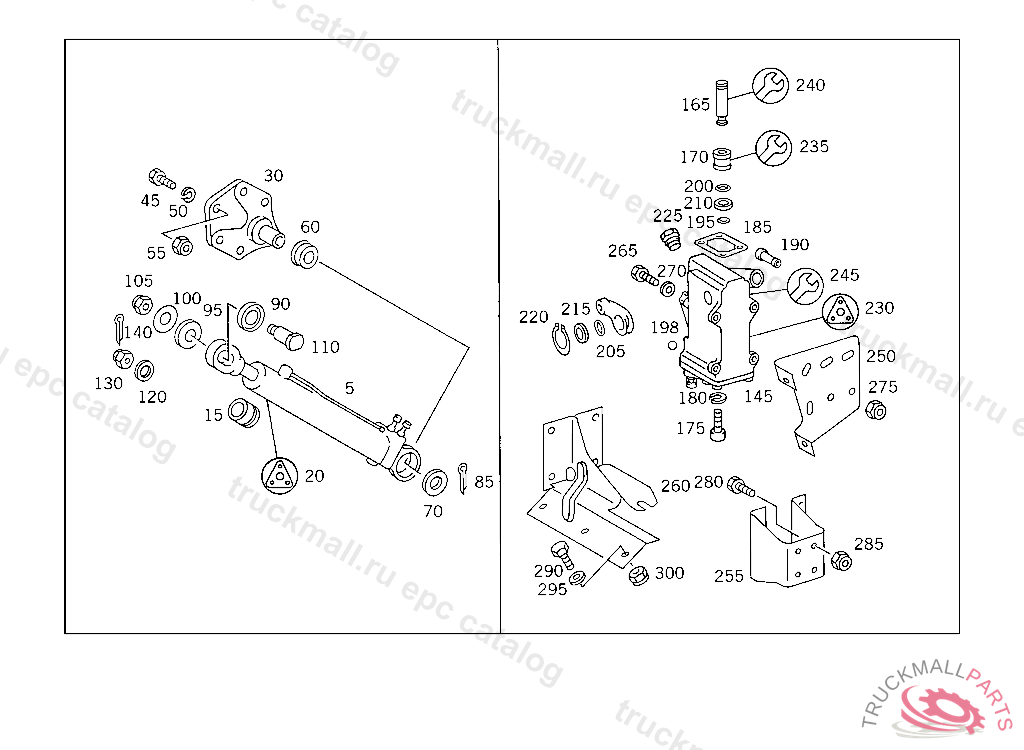 BEARING BRACKET HYDRAULIC CYLINDER, MODEL 415/416/417 FOR USE WITH SHORT CAB MERCEDES BENZ 415 5 014668 416 5 000515 417 4 972023