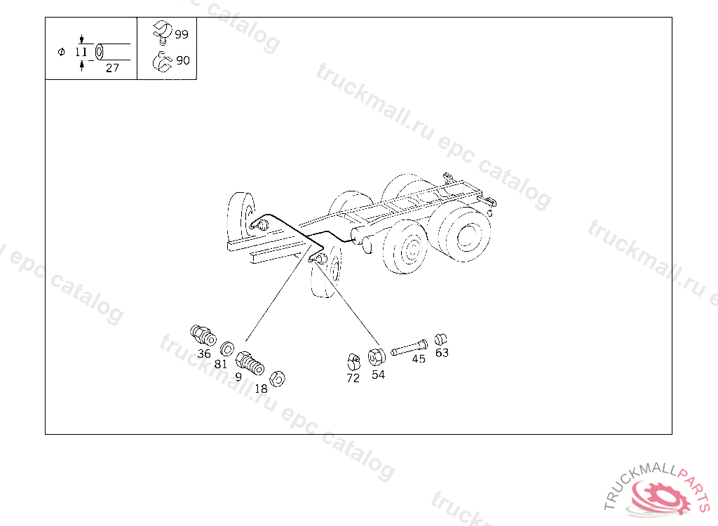 HOSE FRONT AND REAR AXLE BRAKE CYLINDERS 11 MM