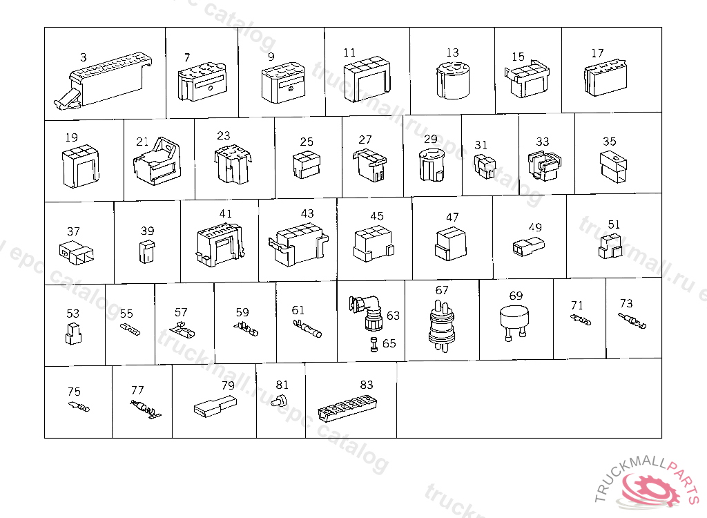 PIN BUSHING HOUSING. PLUG HOUSING FROM CHASSIS/CAB CONNECTION POINT TO TACHOGRAPH