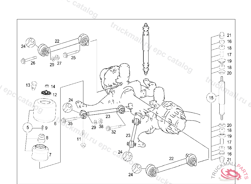SHOCK ABSORBER (PARTS KIT),CENTRAL AXLE, ON VEHICLES HAVING NO MERCEDES BENZ BODY FROM IDENT NO. 097836 , 628.000.10.300182, 628.000.14.172141 FOR USE WITH MERCEDES-BENZ BODY FROM IDENT NO. 097976 ALSO INSTALLED ON 300175-300180. ONLY REPLACEABLE BY PAIRS