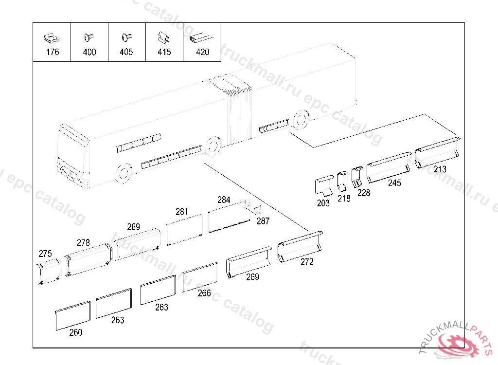 PANELLING LEFT, IN FRONT OF REAR AXLE 257 MM, .......I.......INR.7E87I.......I II