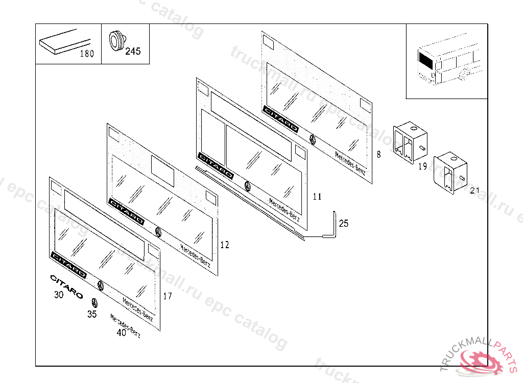 GLASS PANE WITHOUT LOGO AND MERCEDES STAR 2500 MM