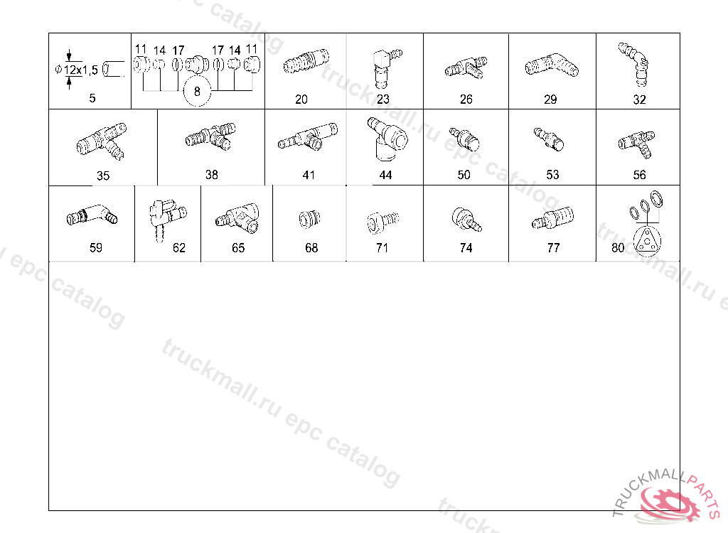 T-FITTING AIR RESERVOIR, UP TO IDENT NO. WEB 105308 EXCEPT FOR 104831-104930,104931-105130,105261,105268-105295,105307. ALSO INSTALLED IN 105317,105318,105324,105382,105388. UP TO IDENT NO.VF9 300288 EXCEPT FOR 300046,300282-300284.