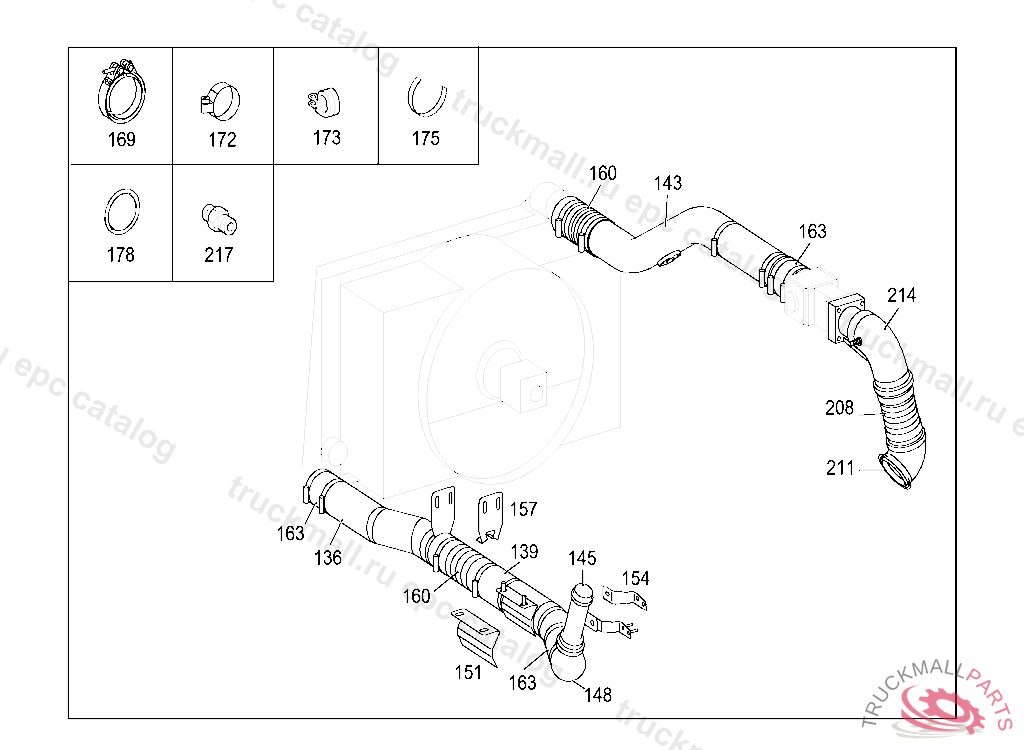 CHARGING AIR LINE (CHARGE AIR PIPE), FIRST EXHAUST STOCK OF OLD PARTS UP TO ENGINE 136738, Replaced By: A4570986507