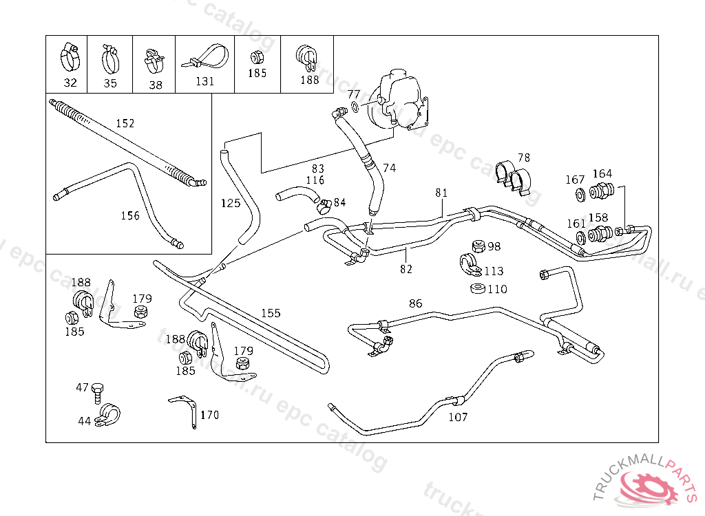 CLAMP DELIVERY AND SUCTION LINES TO ENGINE, FRONT