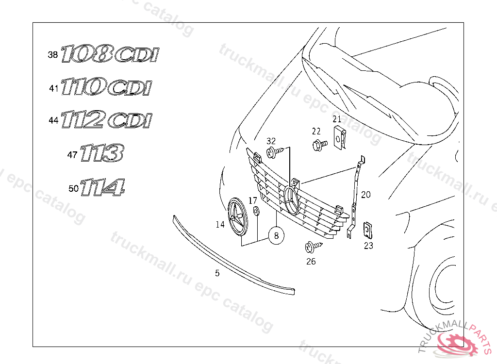 V 200 CDI, V 220 CDI, V 200, V 230, V 280 - 638.294 FROM IDENT-NR. 246706 - 88 BUMBER/FENDER/ENGINE HOOD