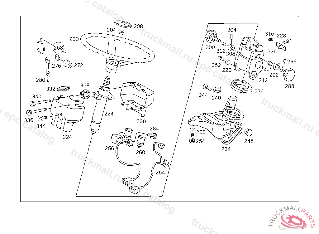 STEERING COLUMN END , FIRST EXHAUST STOCK OF OLD PARTS FROM IDENT NO. 4 727154 - 5 468371, Replaced By: A3054600452