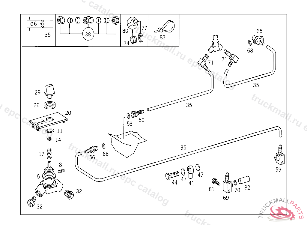 SCREW DELIVERY AND SUCTION LINES TO ENGINE, FRONT M 6X35