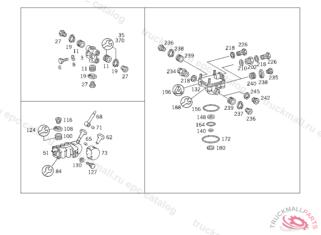 BRAKE VALVE REPAIR KIT BOSCH,TO 001 430 37 81/46 81, WITH HAND BRAKE VALVE ON ENGINE TUNNEL, FROM IDENT NO. SEE MF 26032