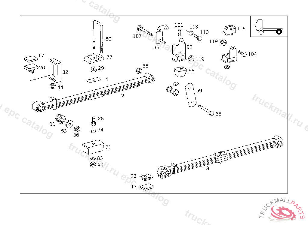 SPHERICAL WASHER FRONT SPRINGS TO FRONT AXLE,5 468450
