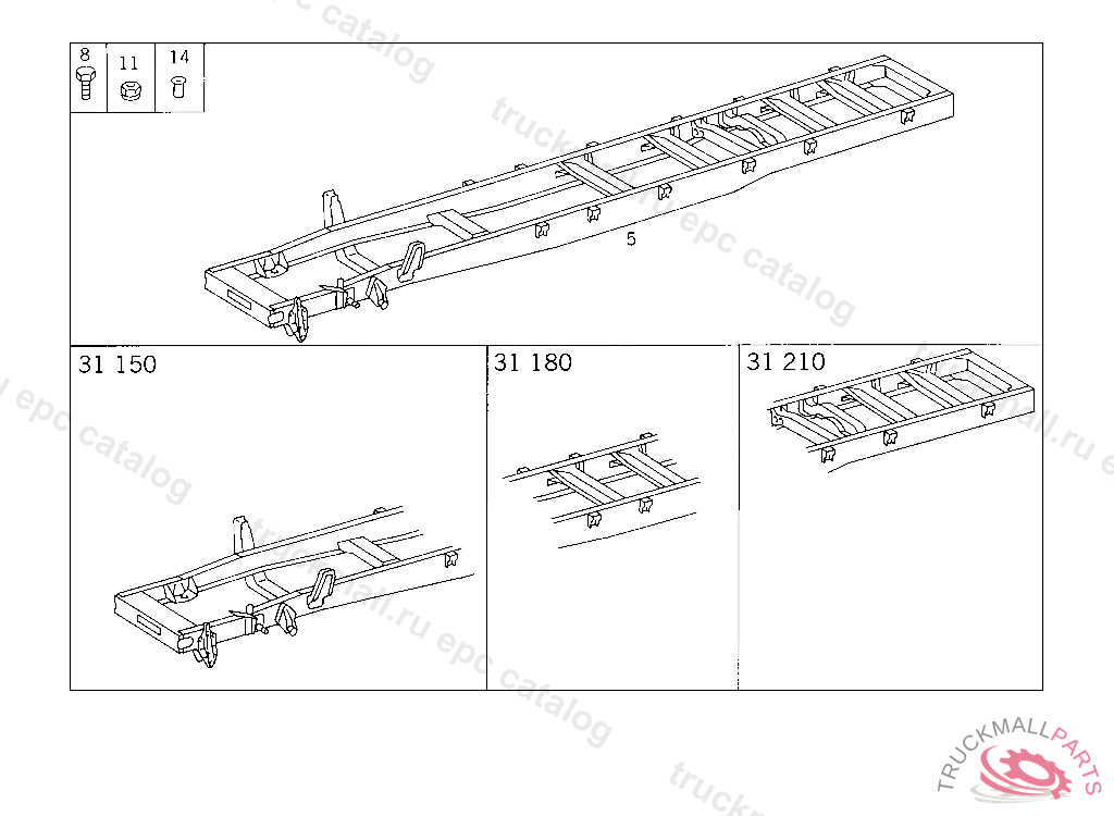 FRAME LESS TRANSMISSION CROSS MEMBER AND REAR CROSS MEMBER, FOR USE WITH SHORT VERSION OF MERCEDES-BENZ CAB TO BE ADAPTED DURING ASSEMBLY