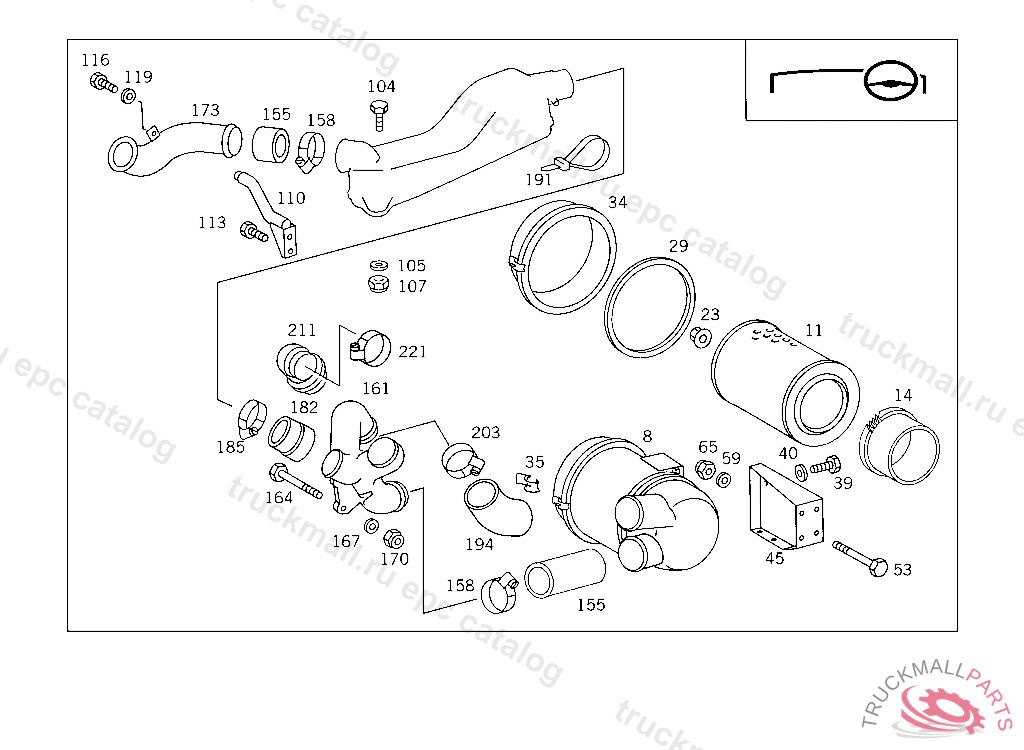 HOSE CLAMP FROM AIR CLEANER TO TRANSVERSE INTAKE PIPE, Replaced By: A0019951910