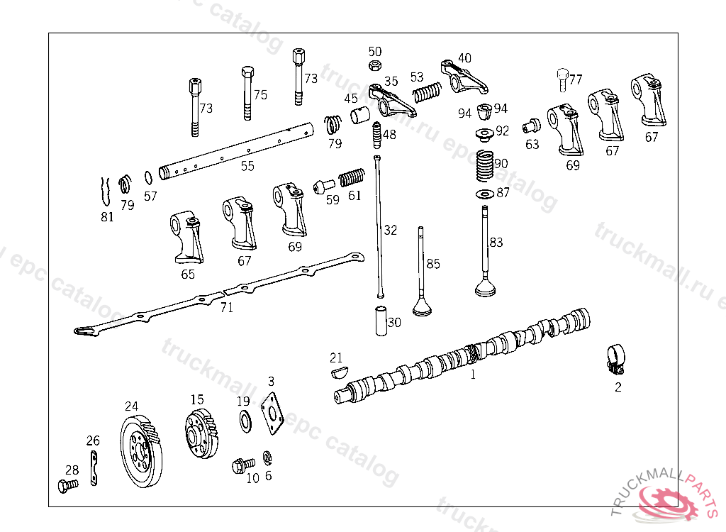 CAMSHAFT , UP TO ENGINE 470359 YEAR OF MANUFACTURE 1977 IN THE CASE OF CAMSHAFT-DRIVEN AIR COMPRESSOR,ALSO ORDER: 352 130 04 16 CONNECTING ROD,352 131 25 33 PARTS KITBEARING SHELLS