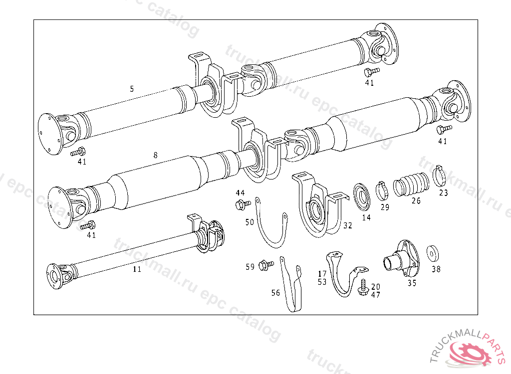 SCREW PROPELLER SHAFT TO TRANSMISSION, 309.9 FROM CHASSIS 522061 309.1 AUTOMATIC TRANSMISSION FROM CHASSIS 523813 309.1 MANUAL TRANSMISSION,WHEELBASE 2950,FROM CHASSIS 521727 309.1 MANUAL TRANSMISSION,WHEELBASE 3500,FROM CHASSIS 520629