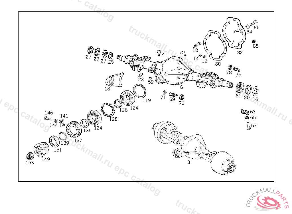 AXLE HOUSING WITH REAR AXLE TUBES AND DIFFERENTIAL CASE BEARING CAPS