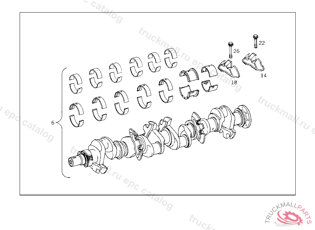 CRANKSHAFT WITH CRANKSHAFT BEARING SHELLS AND CONNECTING ROD BEARING SHELLS, 355 586 39 03 LAPPED BEARING TO BE ORDERED SEPARATELY AND TO BE INSTALLED IN PLACE OF THE ONE INCLUDED IN RANGE OF DELIVERY