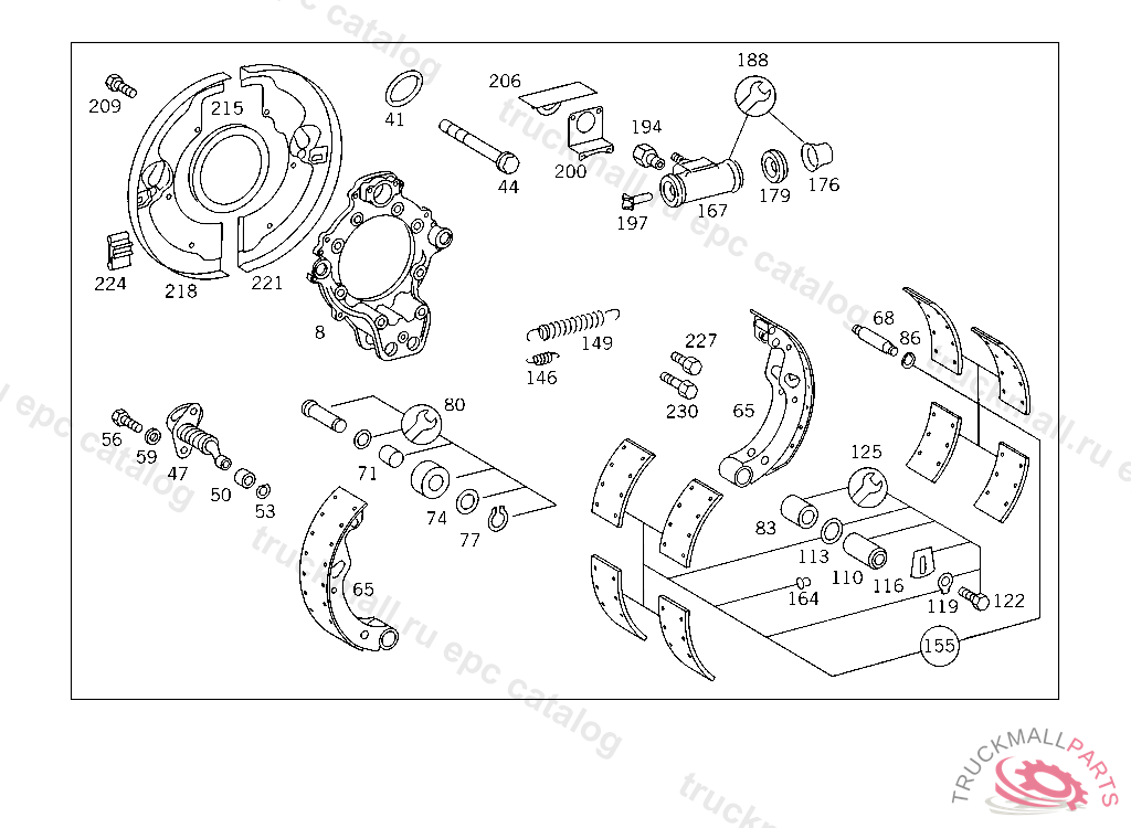 BRAKE LINING (PARTS KIT) (ASBESTOS-FREE BRAKE LINING) 17.30 MM,8X 353 423 37 10), UP TO CHASSIS 910369 ALSO INSTALLED ON 500001-501455,FROM CHASSIS 910370 AND 501456-599999 SEE SPARE PARTS LIST 103