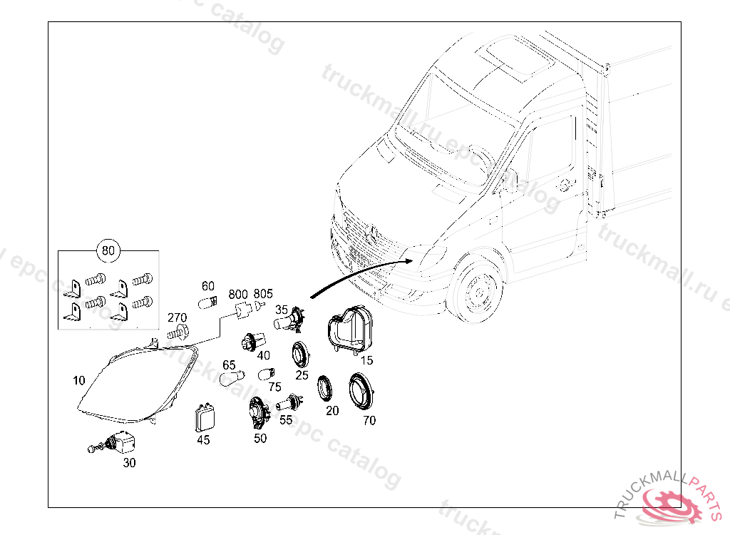 BELL HOUSING RIGHT FRONT LIGHTING UNIT 14-PIN SLK2.8, MLK1.2,E2