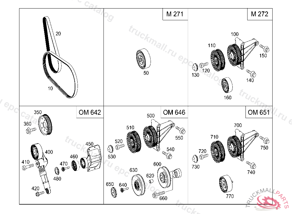 BELT TENSIONER , FIRST EXHAUST STOCK OF OLD PARTS UP TO IDENT NO. 20140331, Replaced By: A6422002670