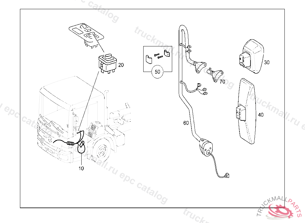 BRACKET CO-DRIVER'S OUTSIDE REARVIEW MIRROR, FOR COMPONENT PARTS SEE SPARE PARTS LIST